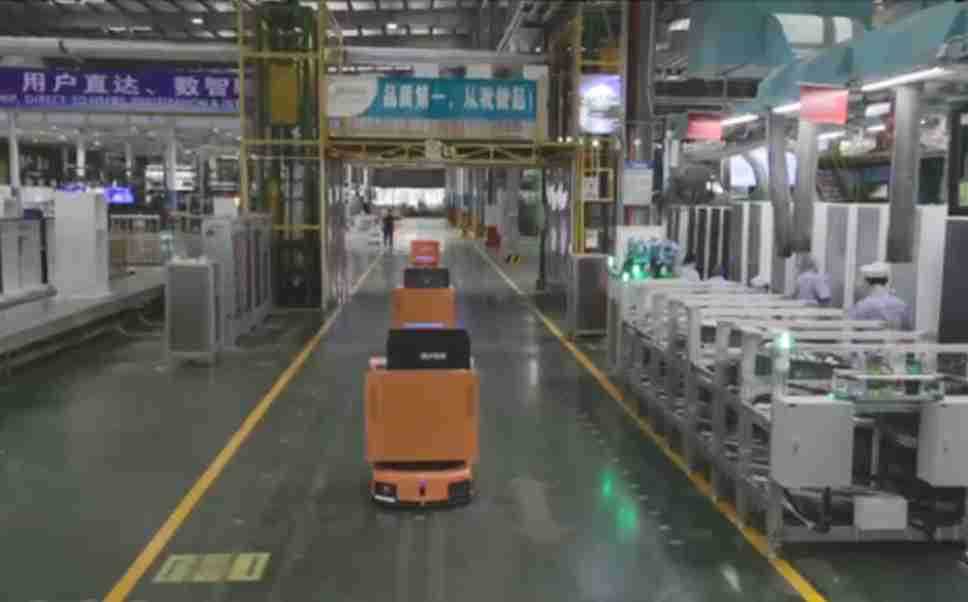 为车载冰箱物流配送打造的智能解决方案,,,包含产中物流通过潜伏举升AMR搬运至线边,,,产后成品物流智能仓储,,流程包含产中物流智能齐套入库,,,,线边安灯叫料AMR智能配送至线边,,,成品入库、、、出库,,,通过无人堆高车机器人,,,,智能仓储管理替代人工作业管理,,,,实现更高存储、、、、更高效率、、更具柔性化的解决方案。。